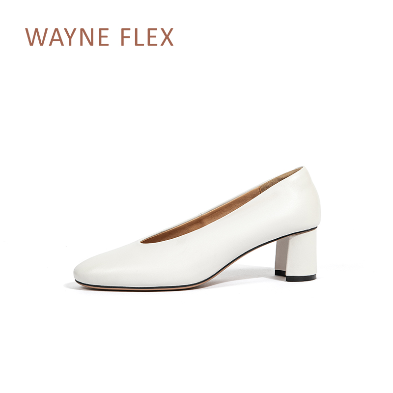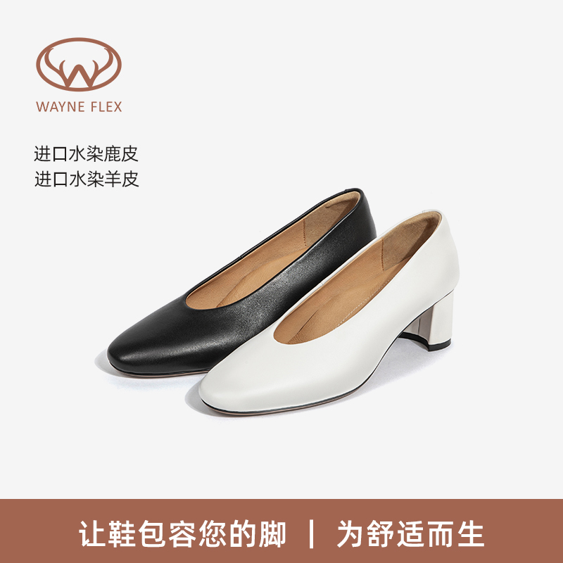 单鞋 羊皮浅口法式 千百度粗高跟鞋 异形跟职业通勤大码 静音系列
