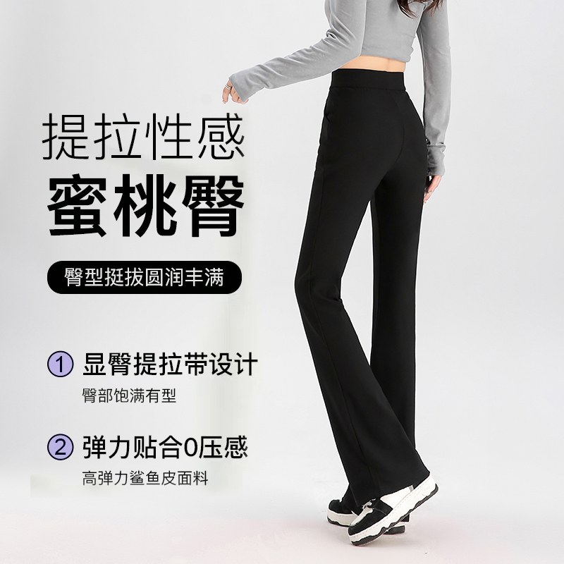 喇叭裤 新款 女 女2025秋季 黑色弹力高腰显瘦松紧腰微喇叭外穿打底裤