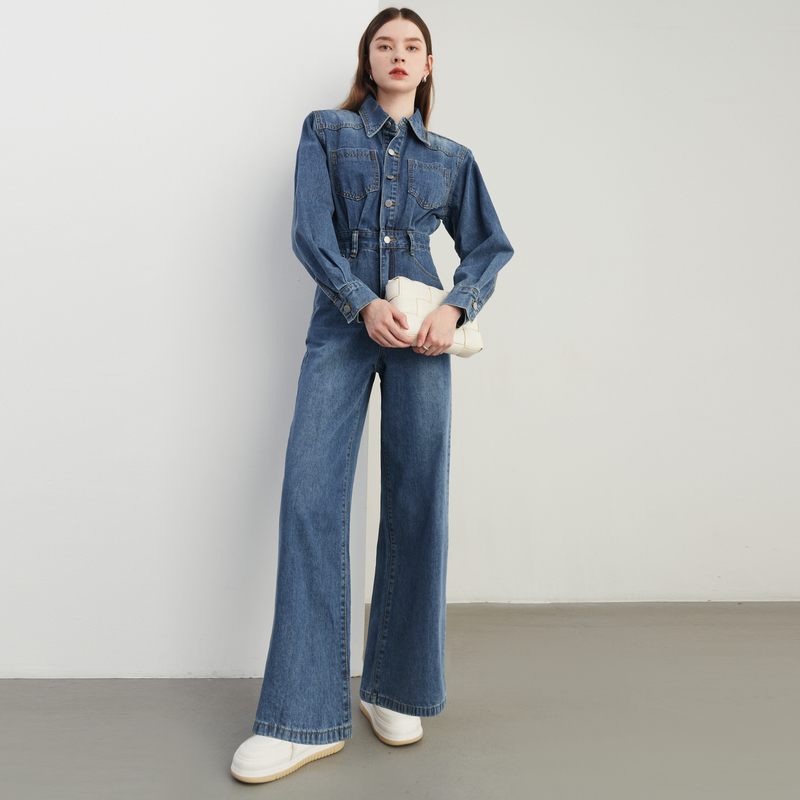 新款 连体裤 气质复古蓝色连体裤 女长款 原色牛仔裤 DPLAY2025秋季