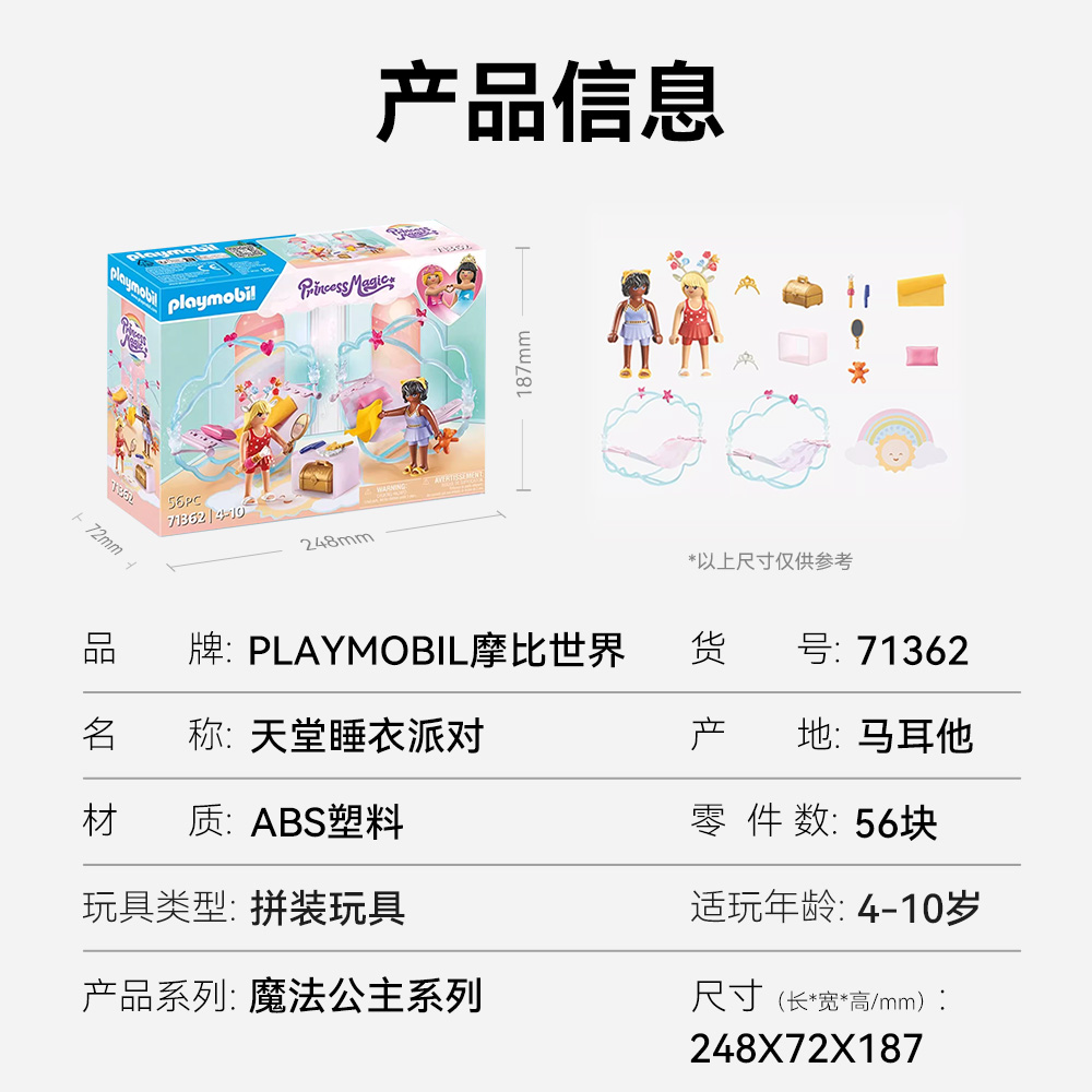 playmobil摩比世界男女孩儿童玩具71362天堂睡衣派对过家家积木