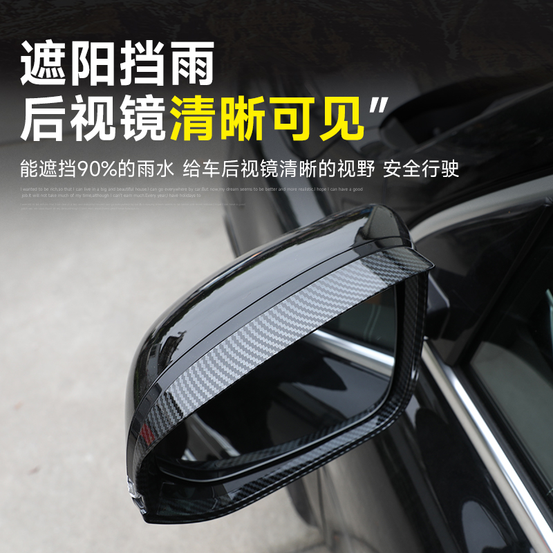 汽车后视镜雨眉碳纤卡扣式 挡雨板反光倒车镜车窗防雨防尘遮雨神器