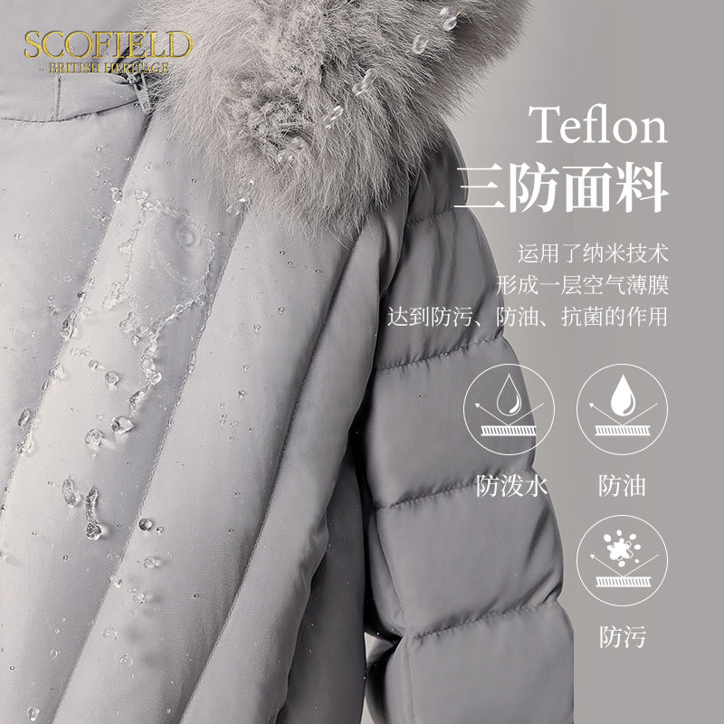 Scofield女羽绒服90%鹅绒毛领温暖轻便冬季 三防