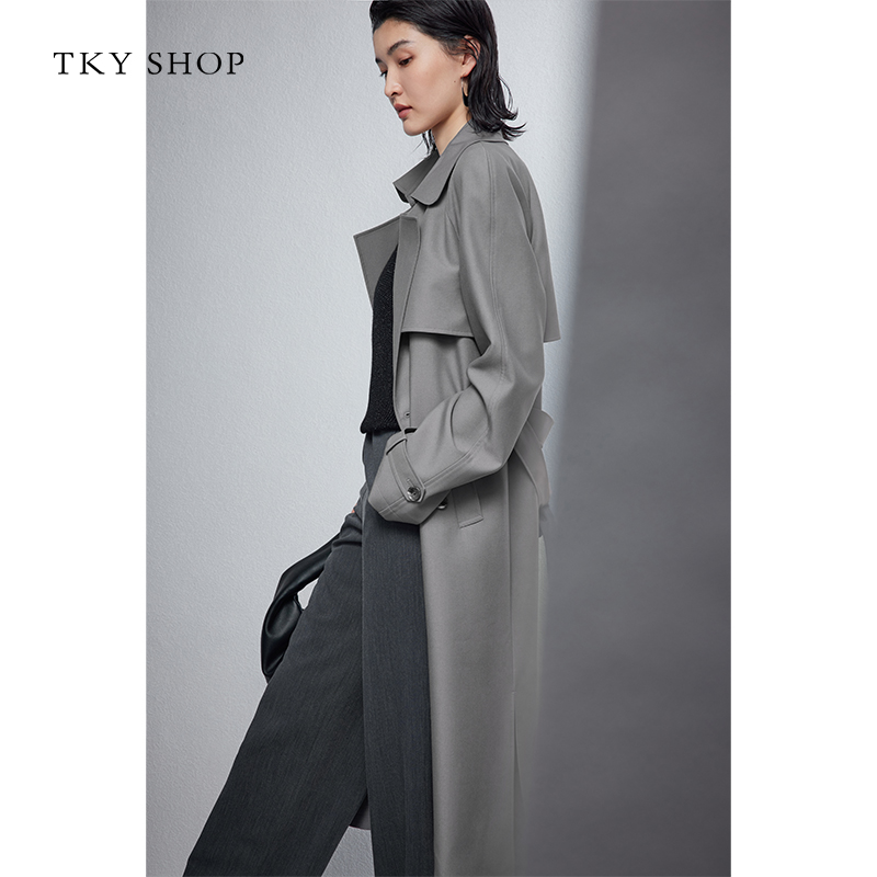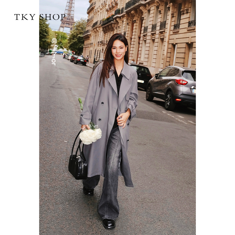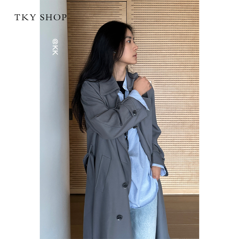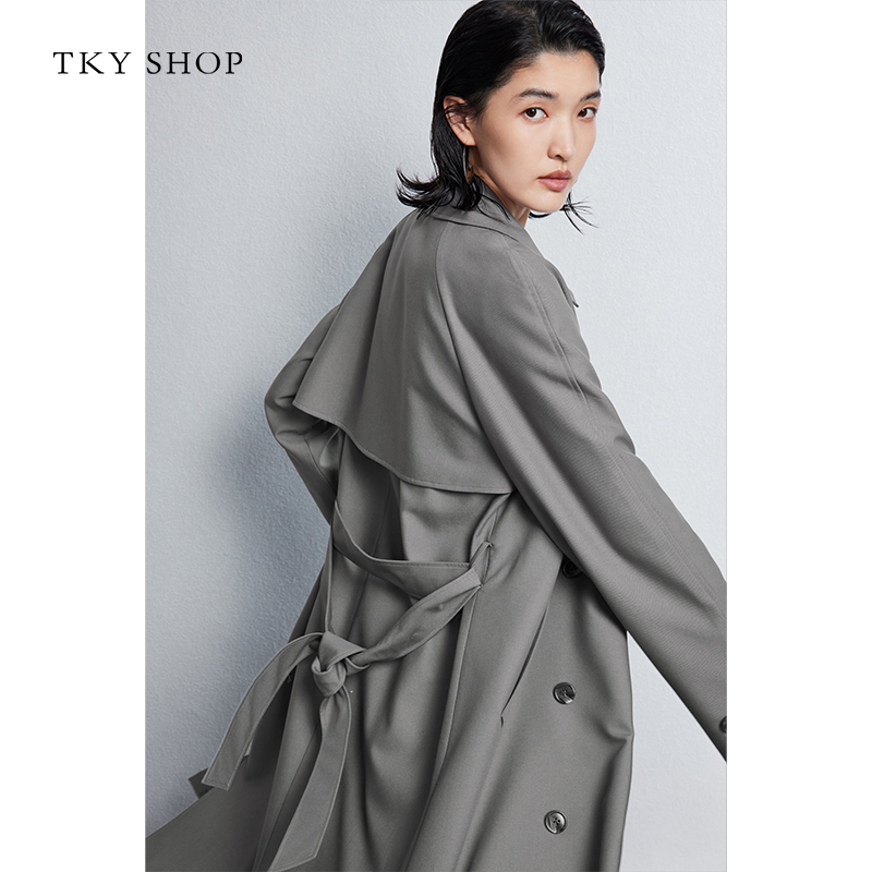 SHOP灰色中长款 TKY 爆款 气质风衣女简约老钱风通勤显瘦外套 经典