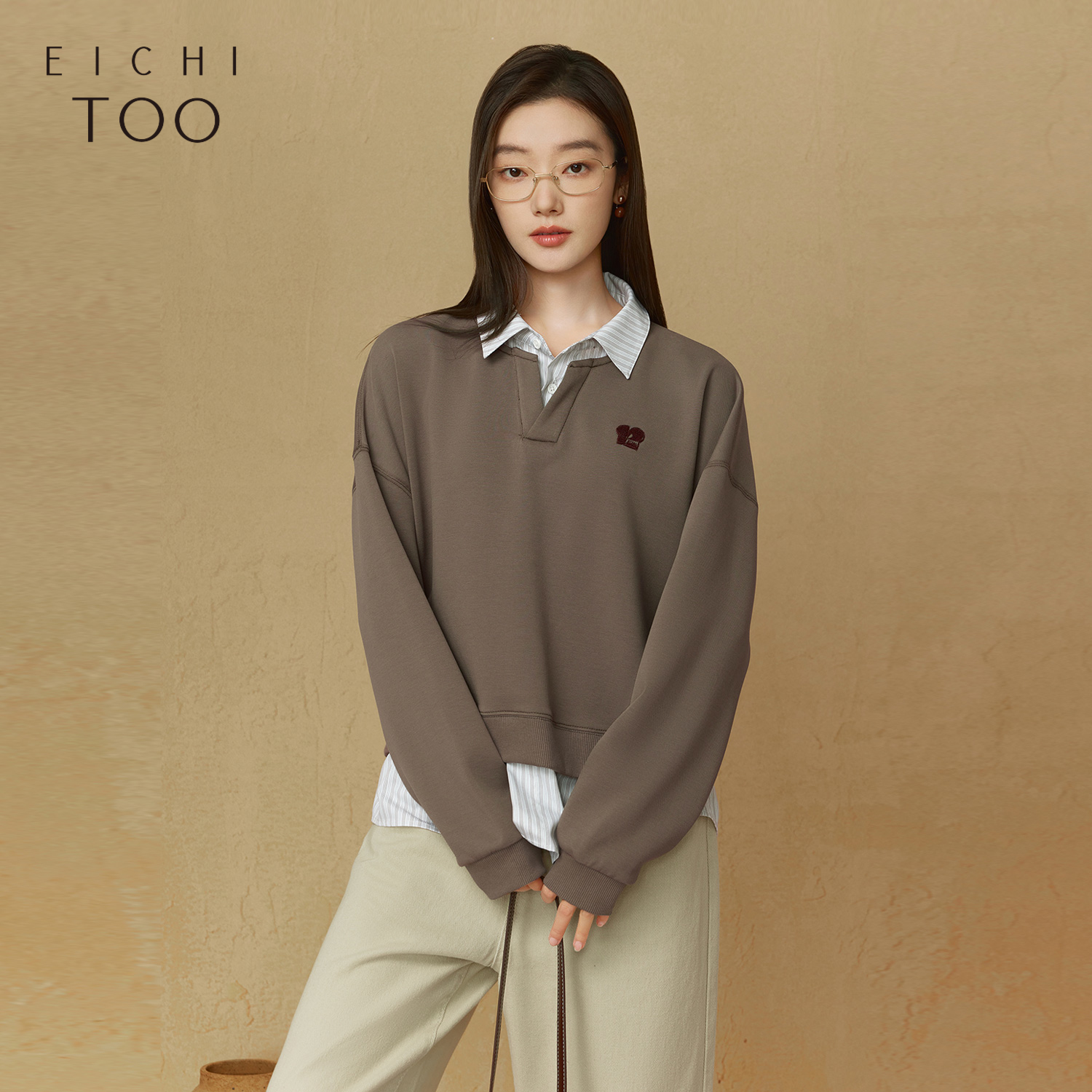 爱居兔假两件拼接卫衣女秋季 领上衣 V型领口衬衫