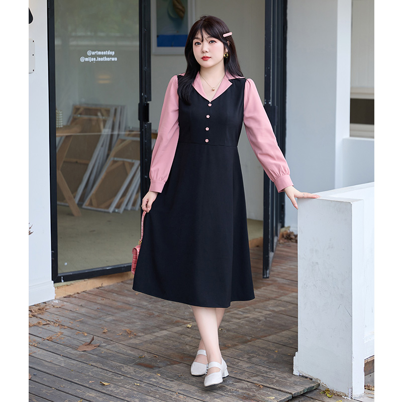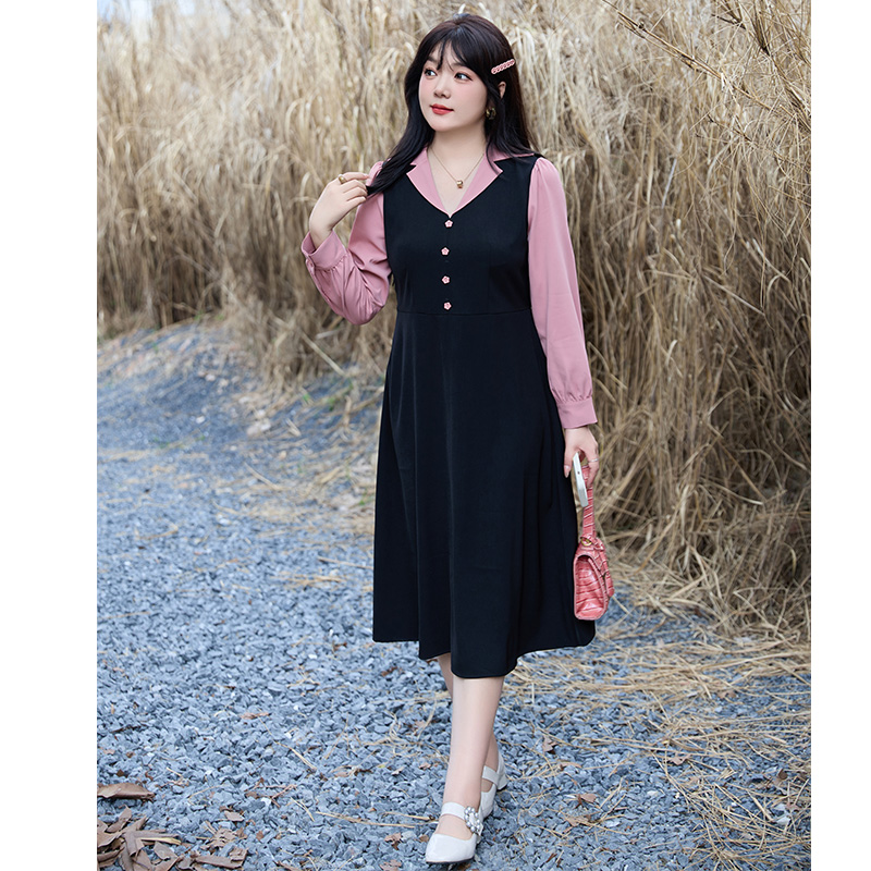 女装 大码 显瘦胖MM气质西装 领法式 长裙 2025秋季 垂坠感连衣裙袖 新款