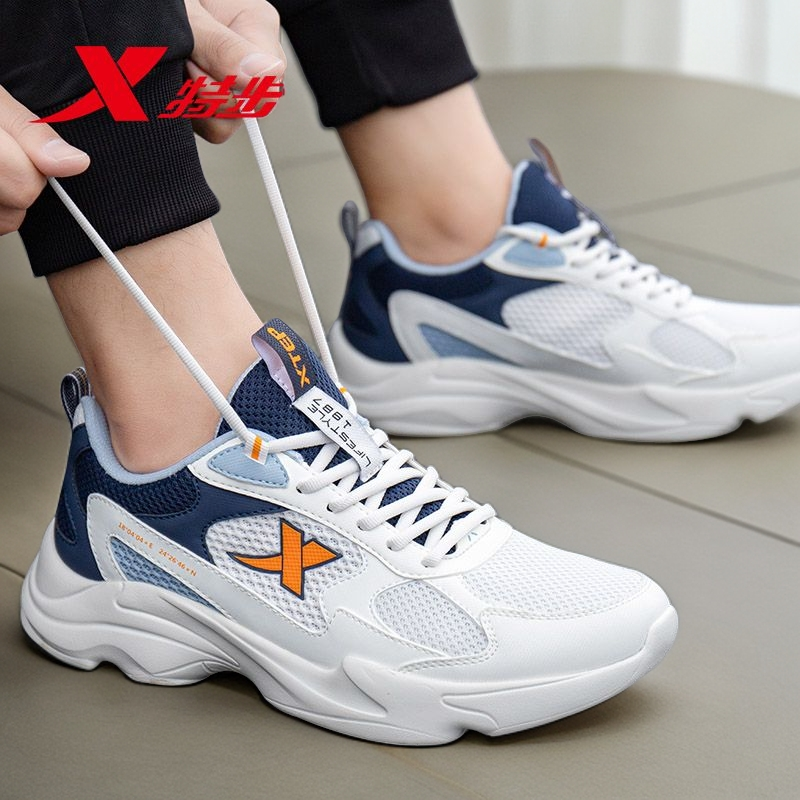 皮面防泼水爸爸减震网面休闲鞋 特步跑步鞋 黑色运动鞋 秋冬新款 男鞋