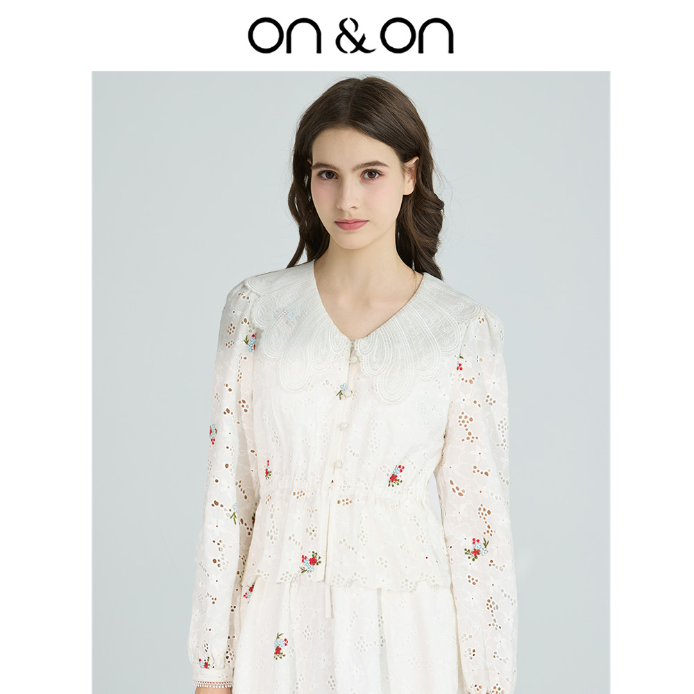 半裙小个子套装 穿搭全棉蕾丝刺绣镂空小衫 女 安乃安25秋季 ON&ON