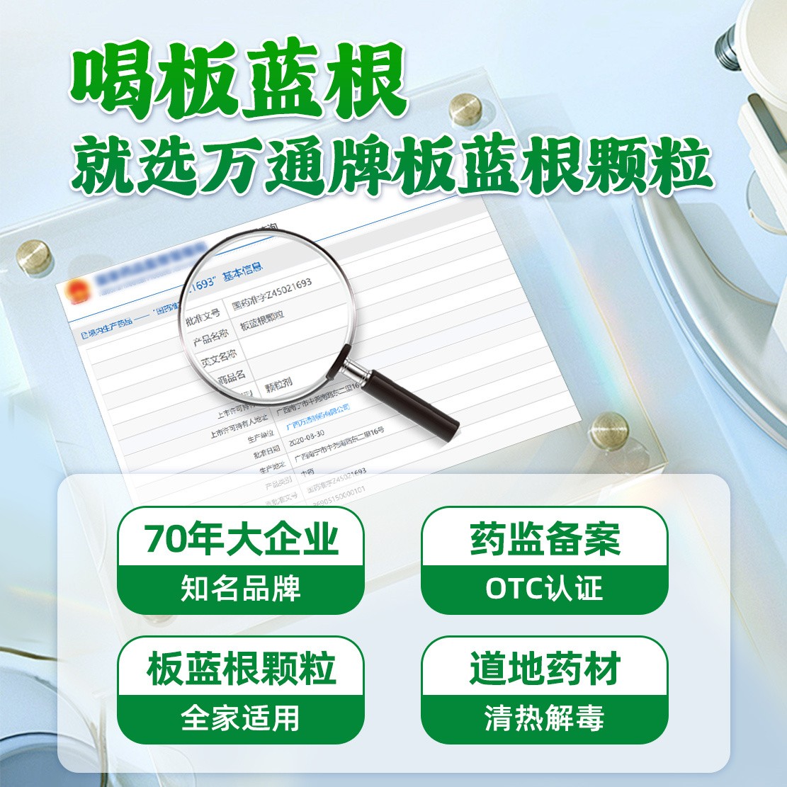 万通板蓝根颗粒清热解毒咽喉肿痛扁桃体炎干燥感冒流感呼吸道感染