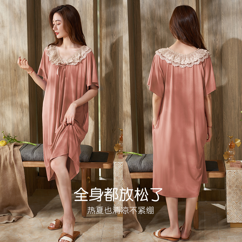 睡衣夏天大码 轩靓2025新款 莫代尔短袖 薄款 家居服连衣裙 睡裙女夏季