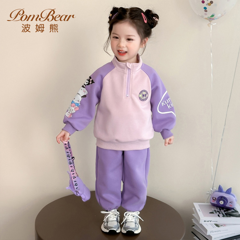 波姆熊女童库洛米卫衣套装 中大童儿童洋气衣服两件套 2025春秋新款