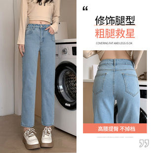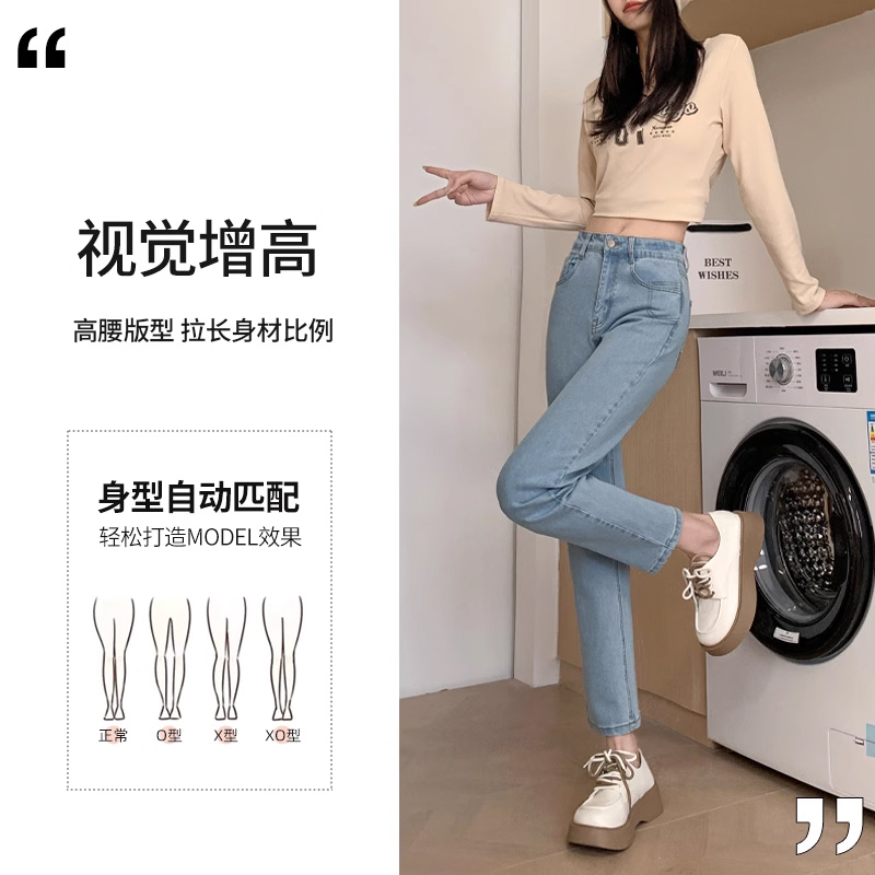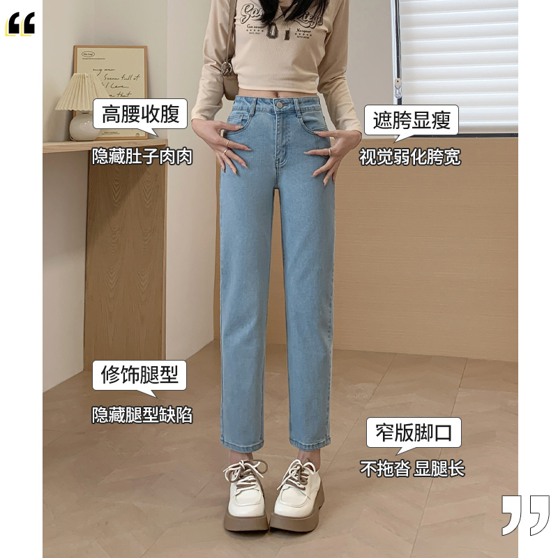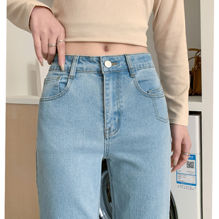 小个子法棍烟管裤 直筒牛仔裤 浅蓝色高腰显瘦修身 春秋季 女2024新款