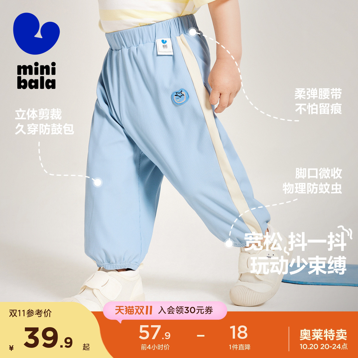 子夏季 迷你巴拉巴拉男童女童宝宝裤 凉感防晒宽松长裤 抖抖裤