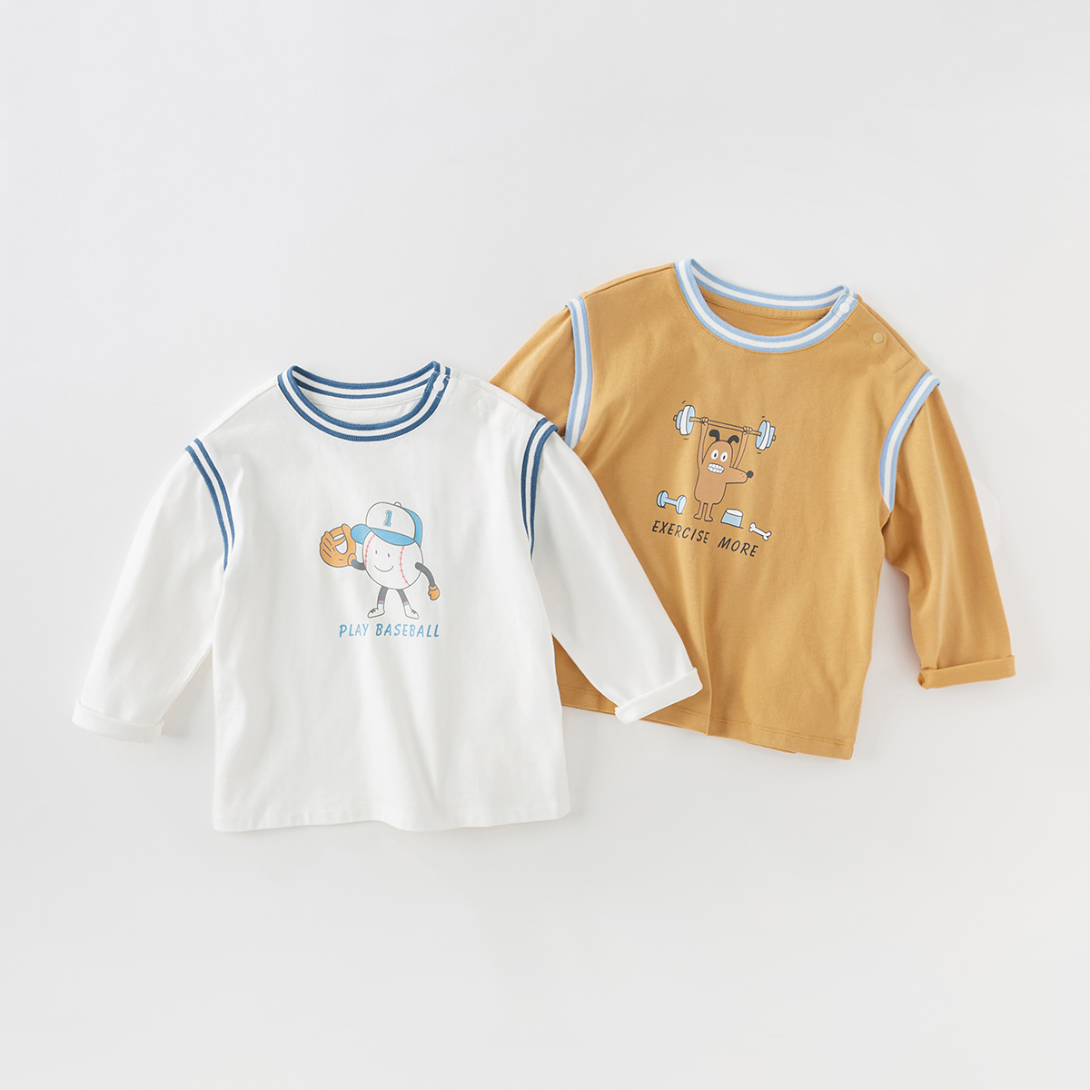男宝宝儿童长袖 戴维贝拉男童纯棉T恤秋装 T恤打底衫 清仓特价