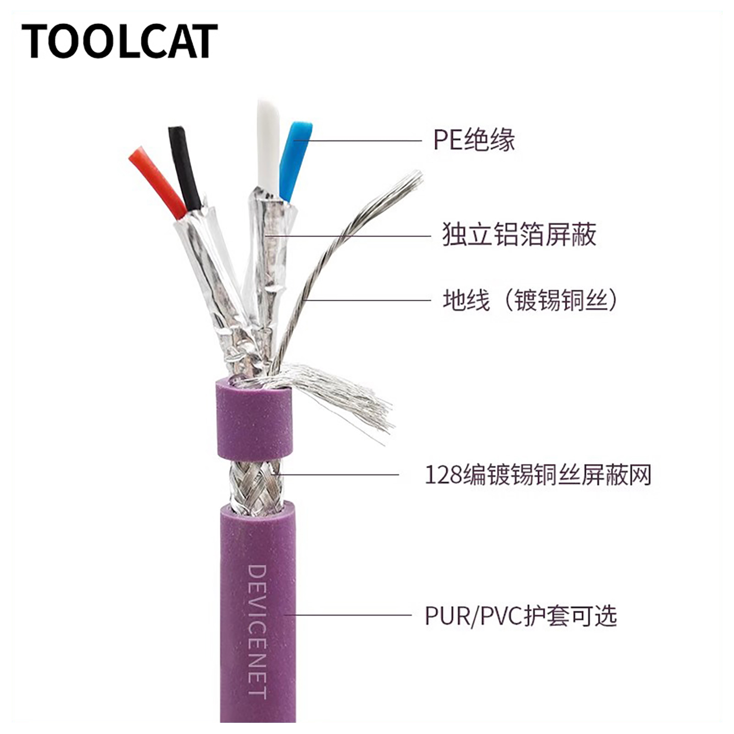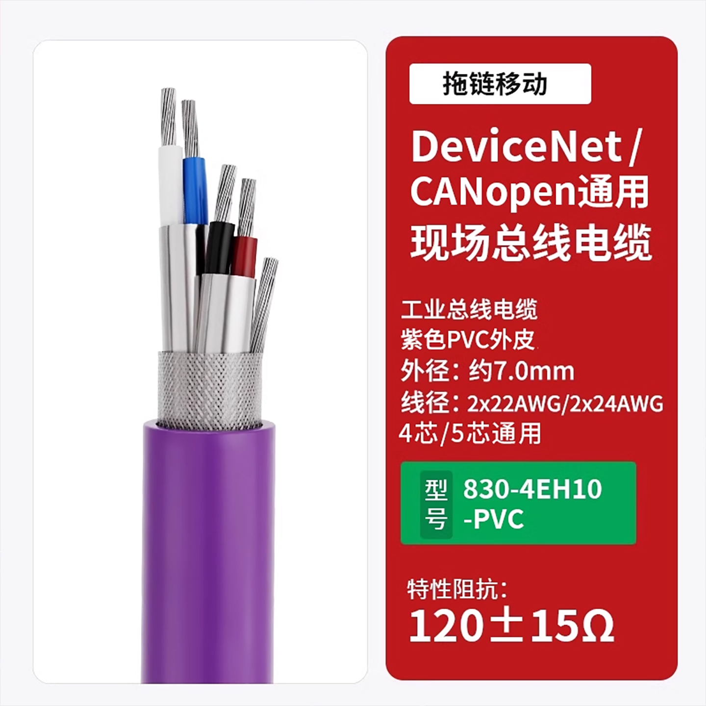 DeviceNet总线通讯电缆2X22AWG抗阻2X24AWG屏蔽4芯工业细电缆网线