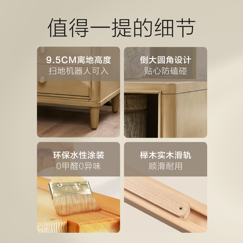 奶油风实木床头柜家用卧室小型床边收纳小柜子2025爆款 轻奢高级感