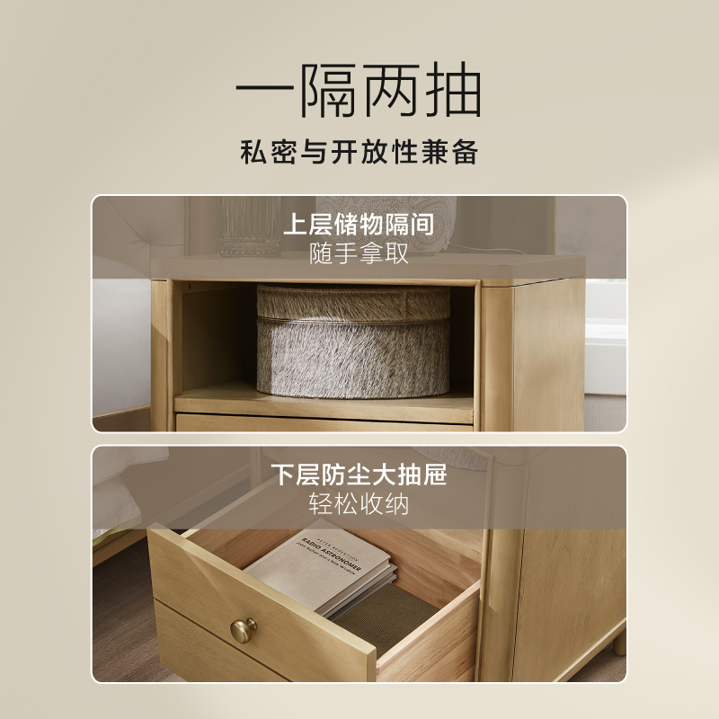 实木床头柜2025新款 简约现代小型轻奢高级感奶油风卧室家用床边柜