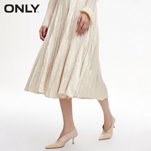 气质百搭高腰中长款 秋季 A字百褶半身裙女 ONLY奥莱