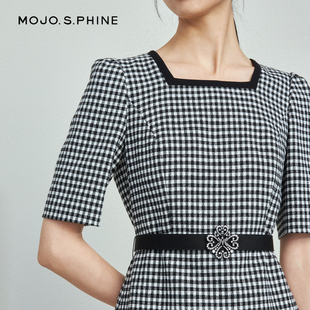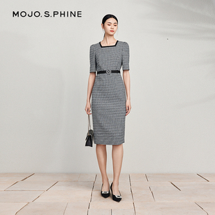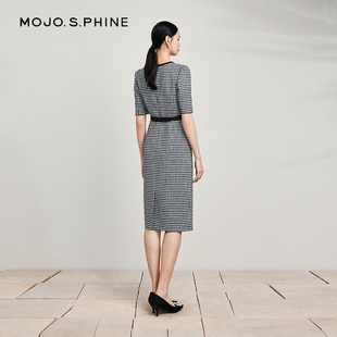 LIME莱茵银丝花呢连衣裙收腰伞摆垂感设计感 朗姿 刘诗琪同款