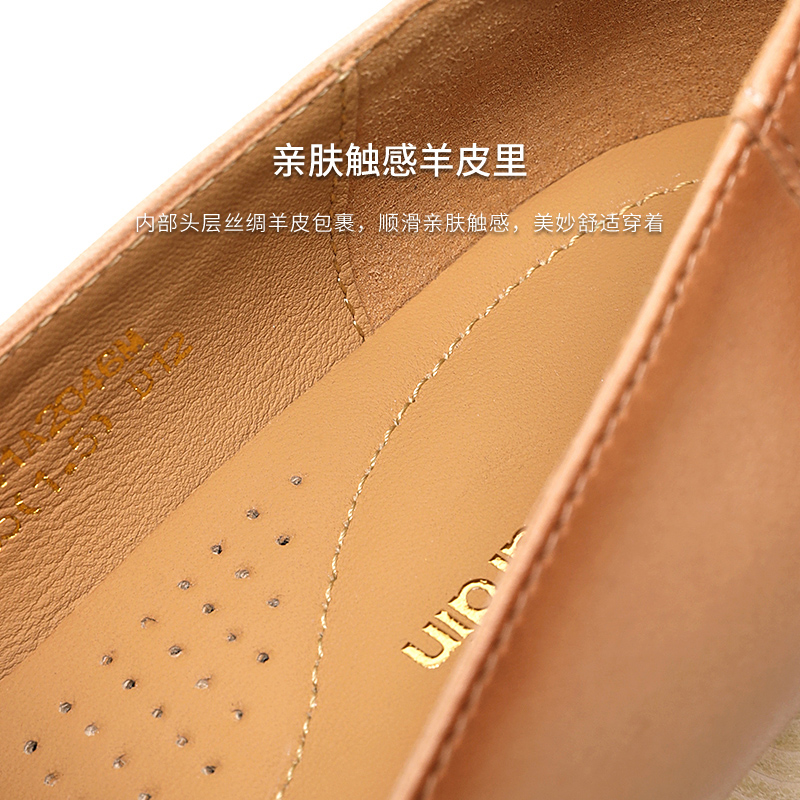 真皮深口单鞋 Pierre 复古晕染中粗跟乐福鞋 皮尔卡丹25女鞋 Cardin