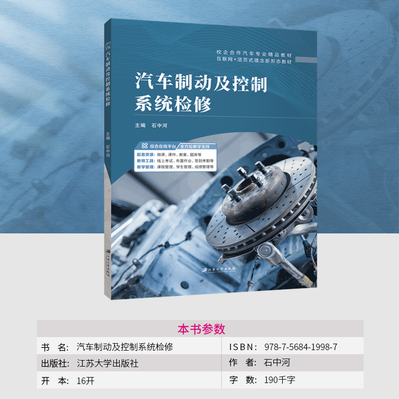 社 江苏大学出版 汽车制动及控制系统检修石中河 零基础自学检修行车制动系统汽车维修入门书籍