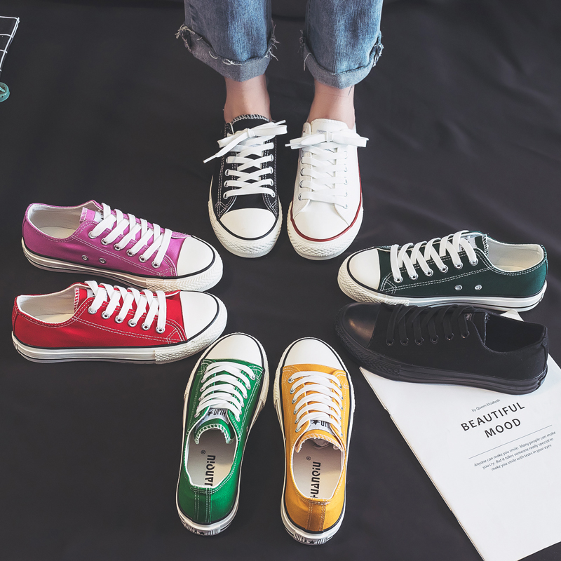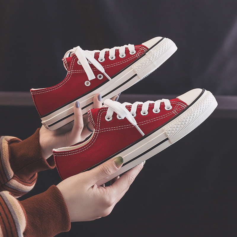 新款 2025秋季 百搭经典 运动板鞋 环球红色低帮帆布鞋 ins潮球鞋 女鞋
