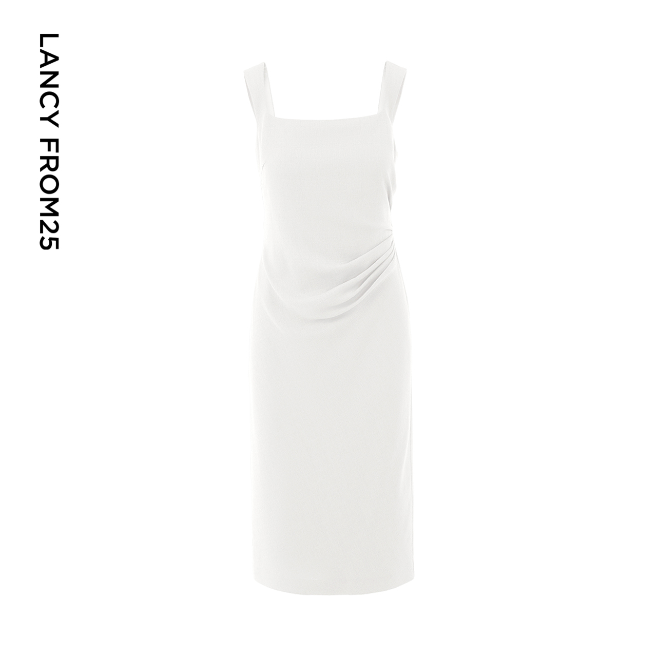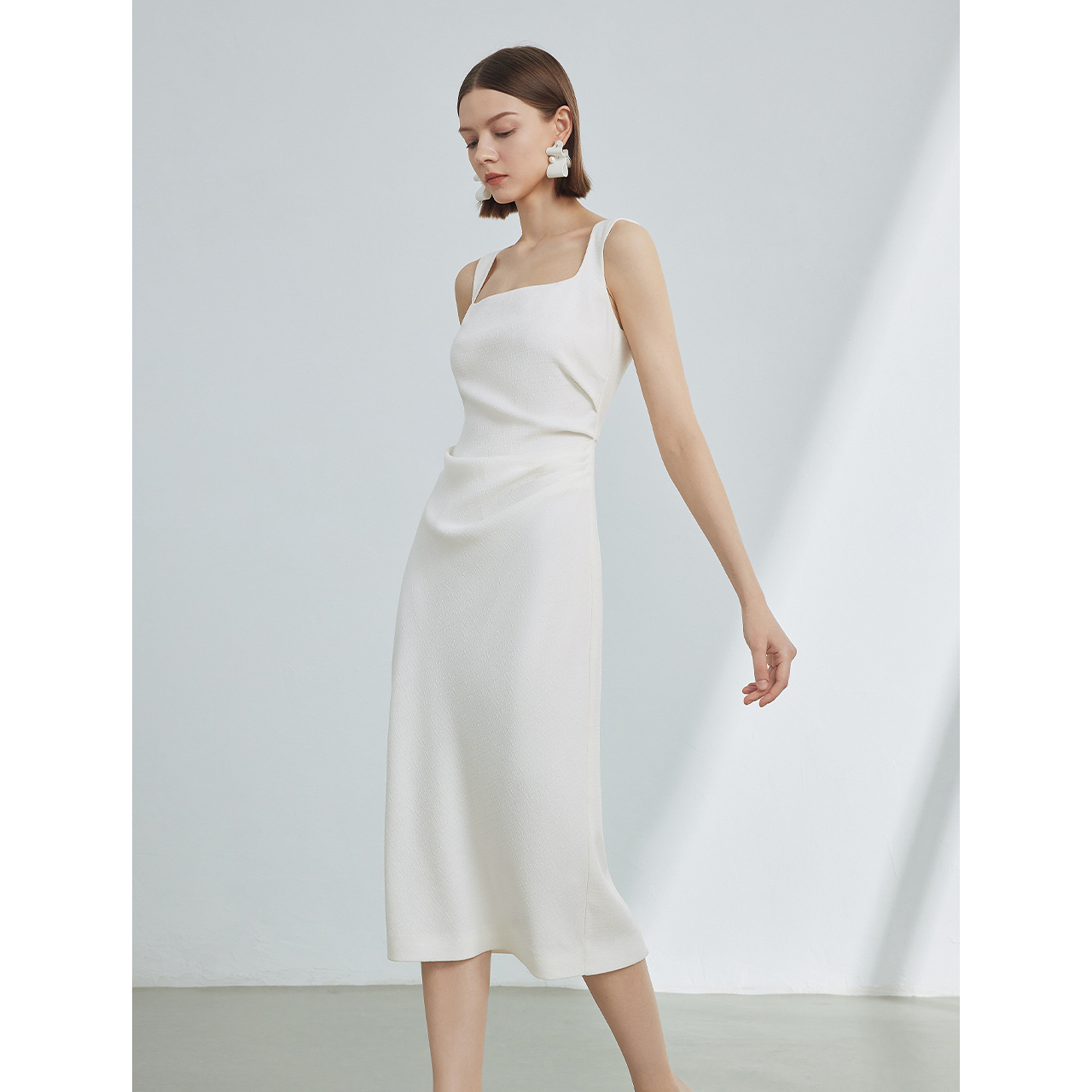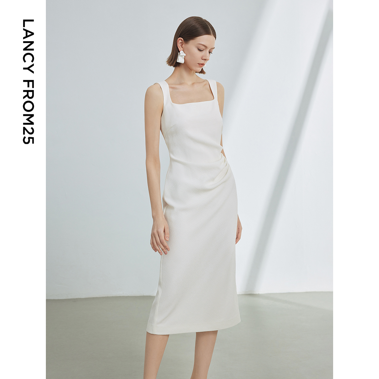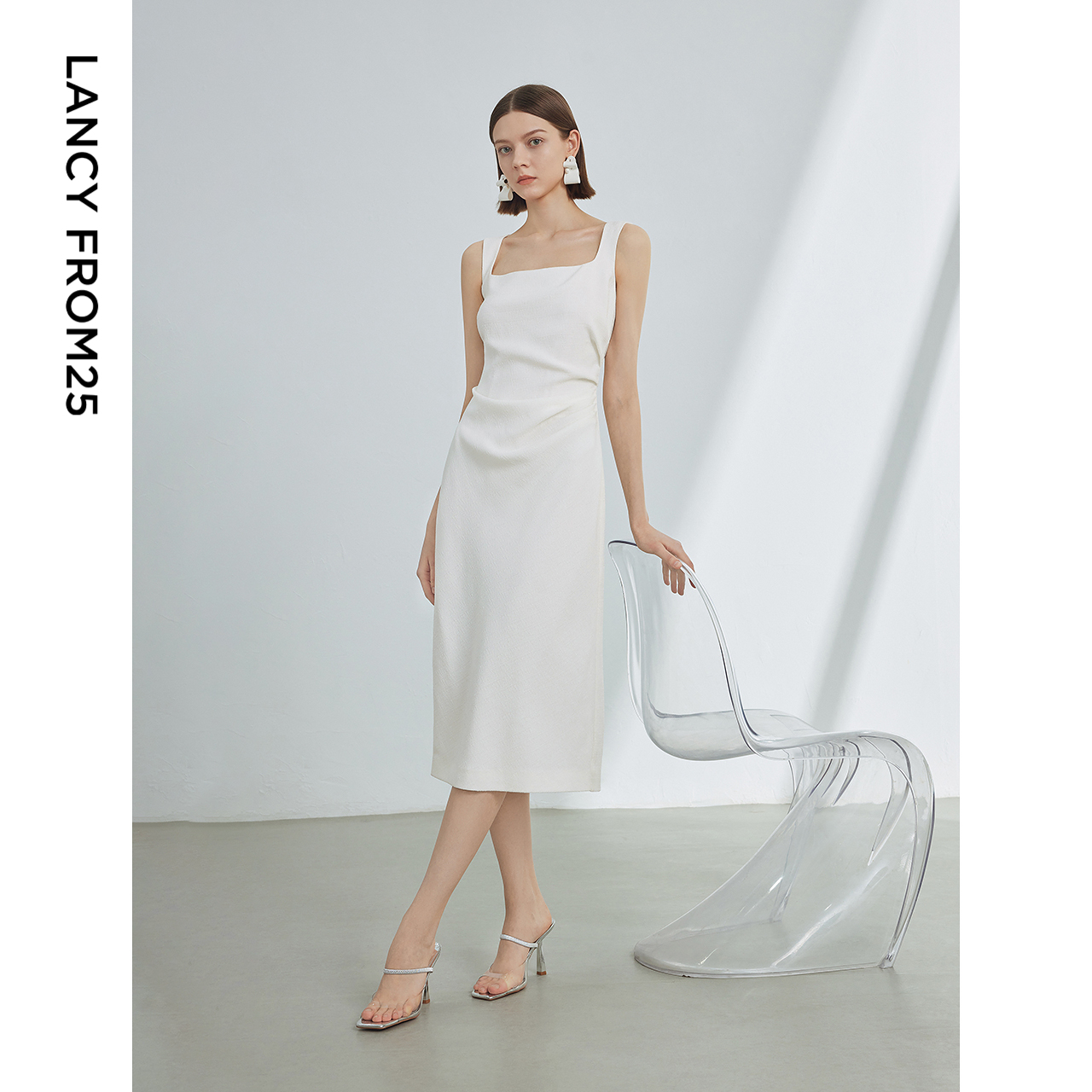 朗姿小香风吊带方领法式 连衣裙 气质设计感收腰高端裙子2024夏新款