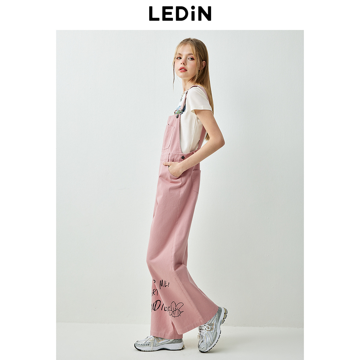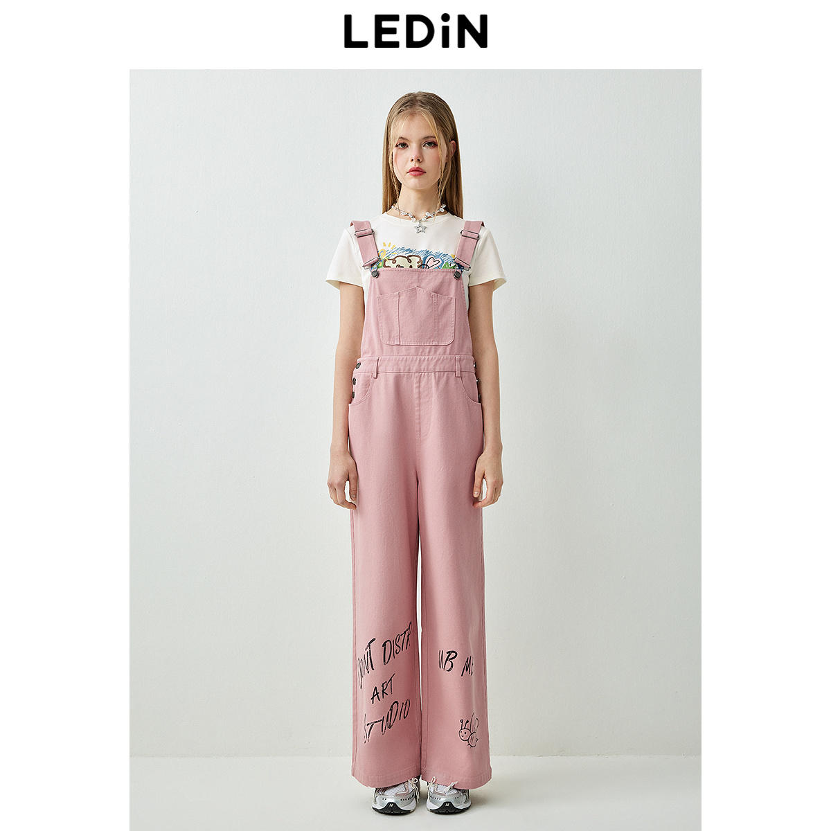 背带裤 宽松裤 春季 街头百搭连体裤 子 新品 乐町涂鸦休闲工装