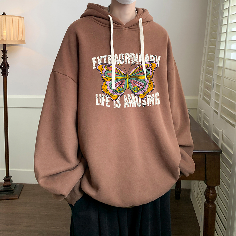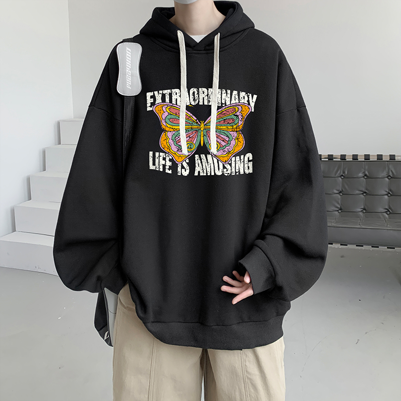 无性别卫衣男春秋款 卡通印花连帽外套男潮牌上衣青少年港风套头衫