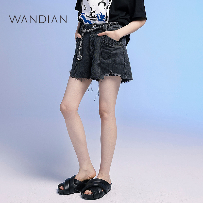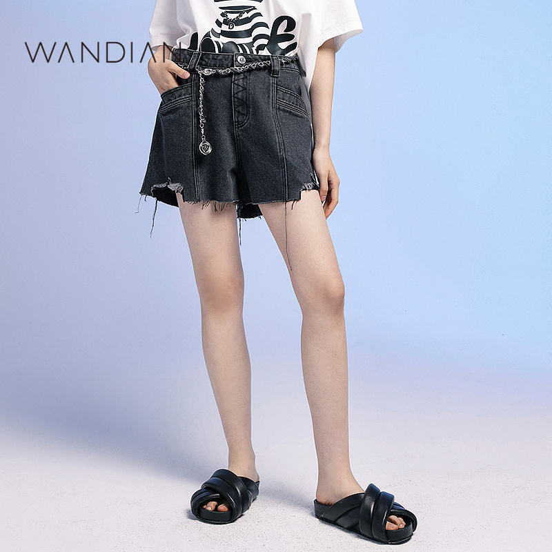 小个子a字阔腿热裤 高腰牛仔短裤 宽松大码 薄2025新款 设计感 女夏季