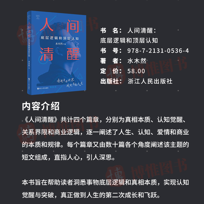 底层逻辑和顶层认知 人间清醒1 水木然 洞悉底层规律实现认知升级思维个人成长自我实现正能量书籍 社 浙江人民出版 官方正版