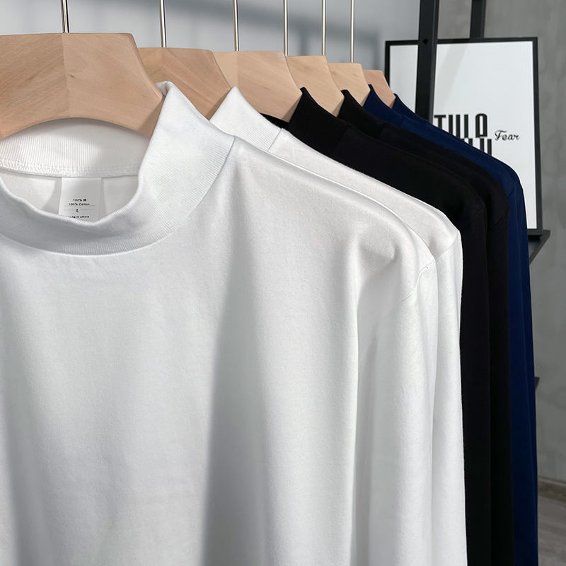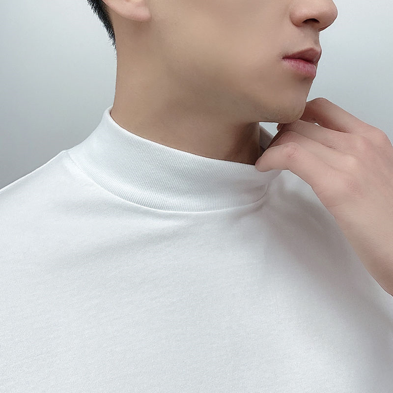 重磅t恤秋冬打底衫 纯棉白色半高领内搭秋衣体恤 男中领新疆棉长袖
