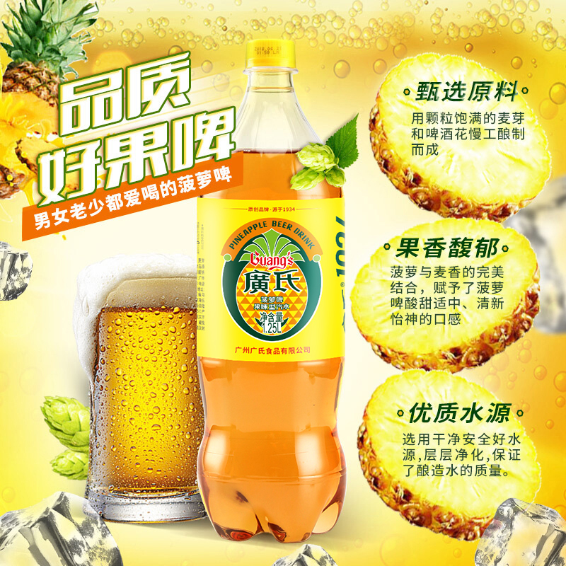 0酒精广式 广氏菠萝啤1.25L 1瓶装 橙宝1.25L 橙味饮料汽水上新