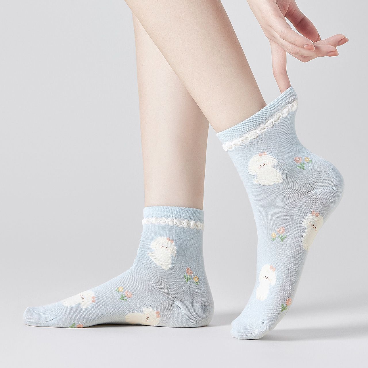 竹纤维袜子女2025新款 春秋短袜抗菌防臭女士蓝色女袜可爱透气 爆款
