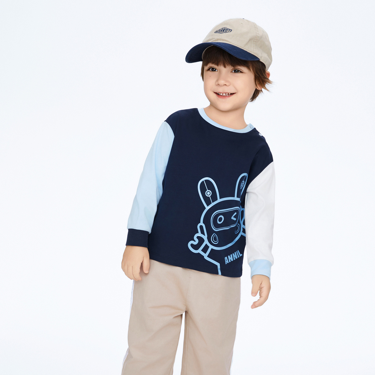 男童T恤秋纯棉长袖 安奈儿童装 弹力XB411590 商场同款