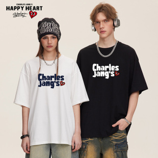 t恤男 字母印花圆领纯棉情侣宽松无性别短袖 查尔斯桃心 2025年夏季