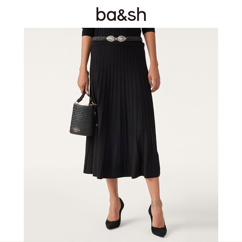 垂感气质优雅羊毛混纺半身裙长裙1H23JADA bash秋季 明星同款