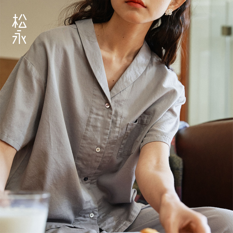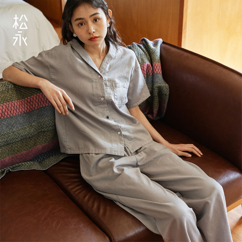 宽松薄款 松永春夏季 九分裤 简约休闲短袖 家居服 女士纯棉睡衣套装