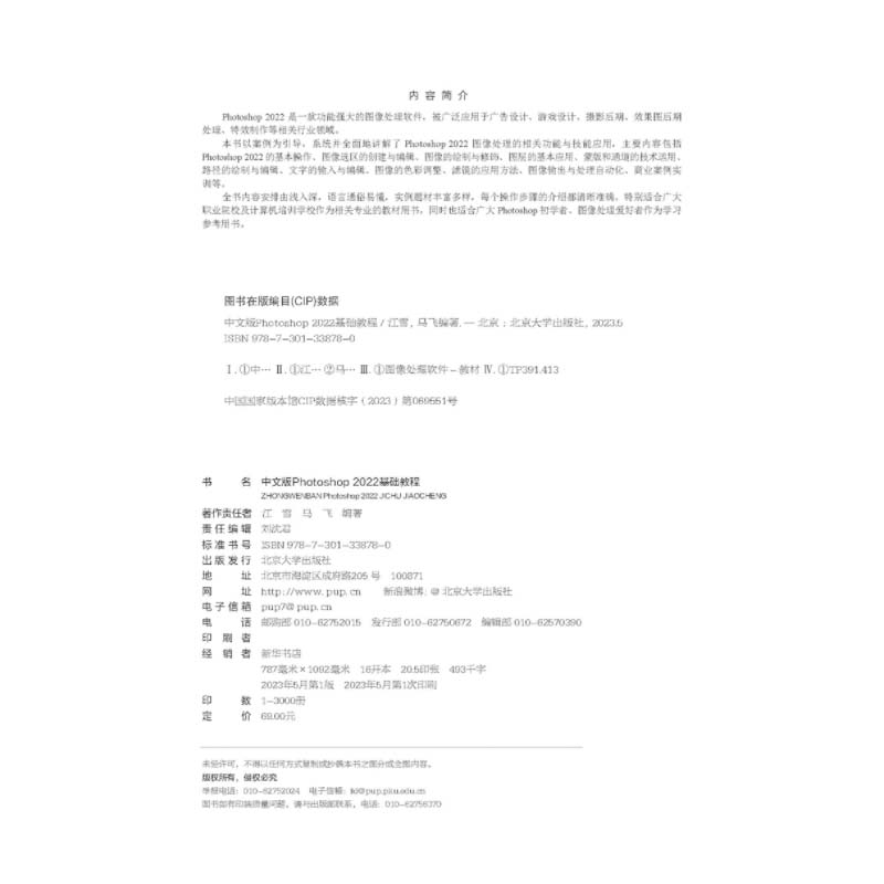 Photoshop 2022基础教程 江雪 正版 北京大学出版 中文版 马飞 社9787301338780 2023新书