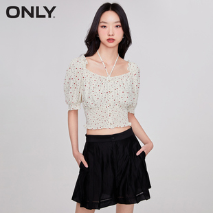 ONLY奥莱 宽松雪纺衫 夏季 淑女花边碎花短款 女 时尚
