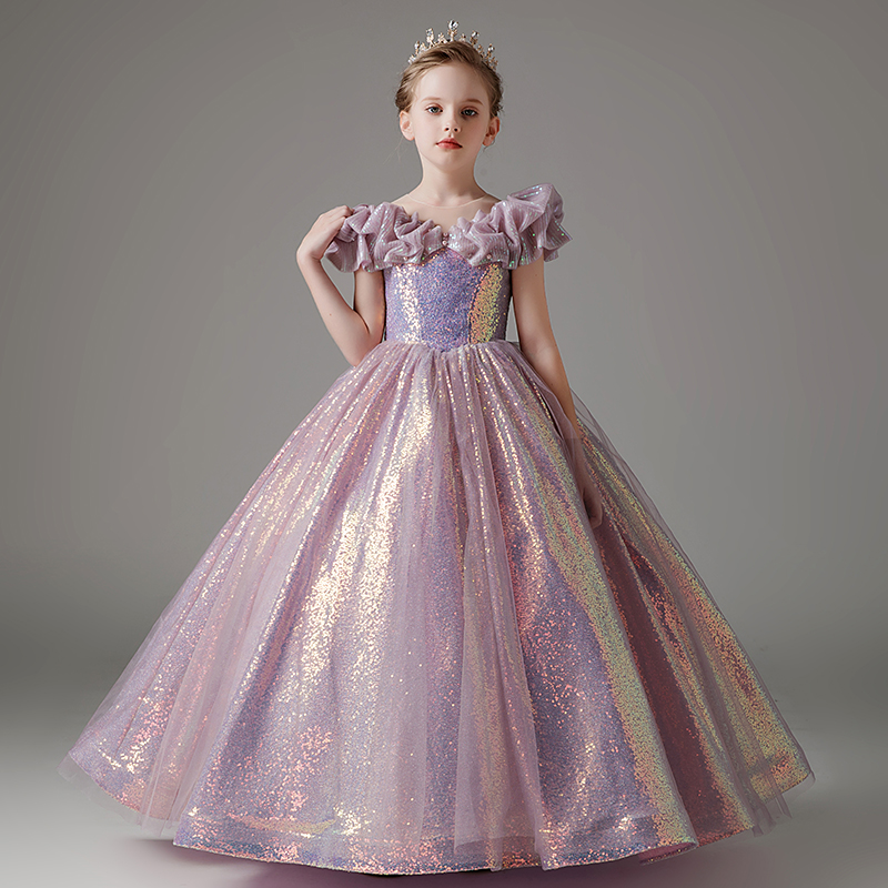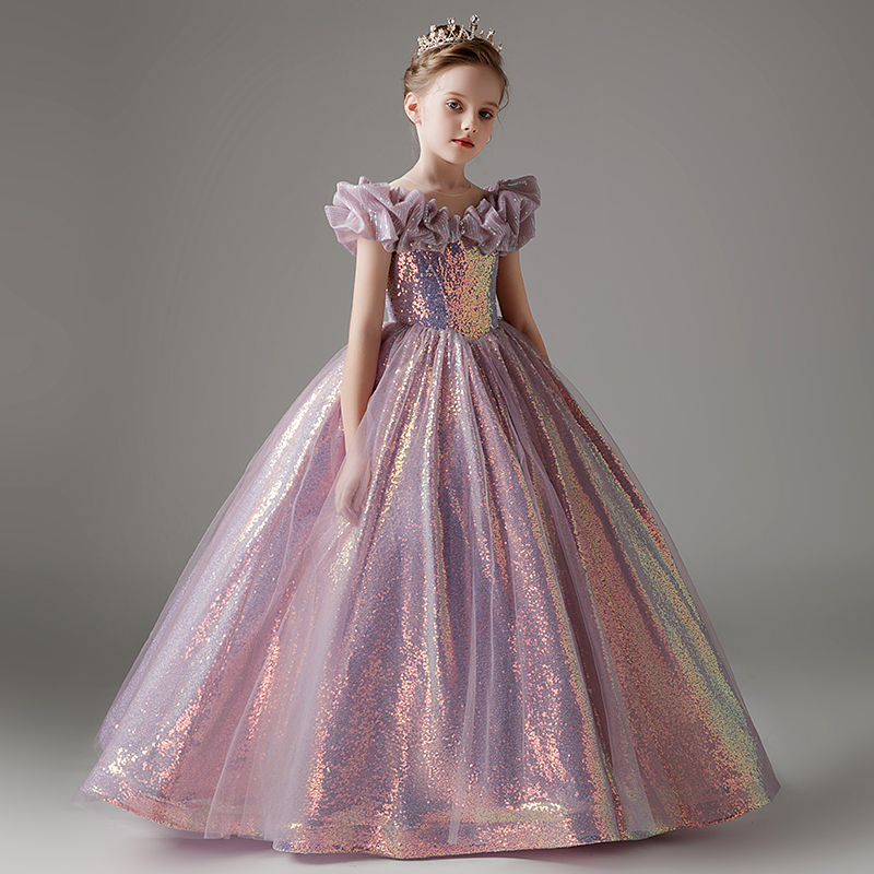 儿童礼服女童公主裙生日小女孩洋气高端主持人钢琴演出服走秀紫色