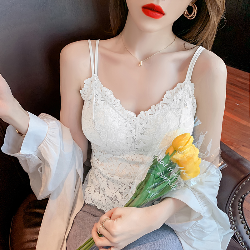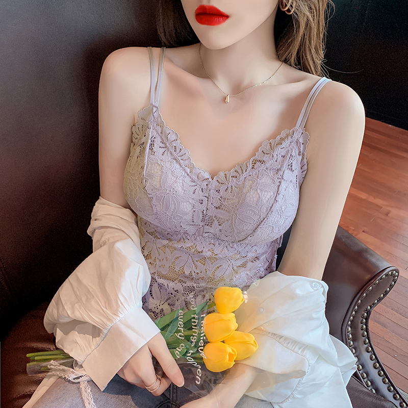 网红蕾丝吊带背心少女带胸垫性感文胸镂空法式 美背内搭上衣打底衫