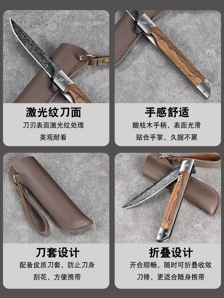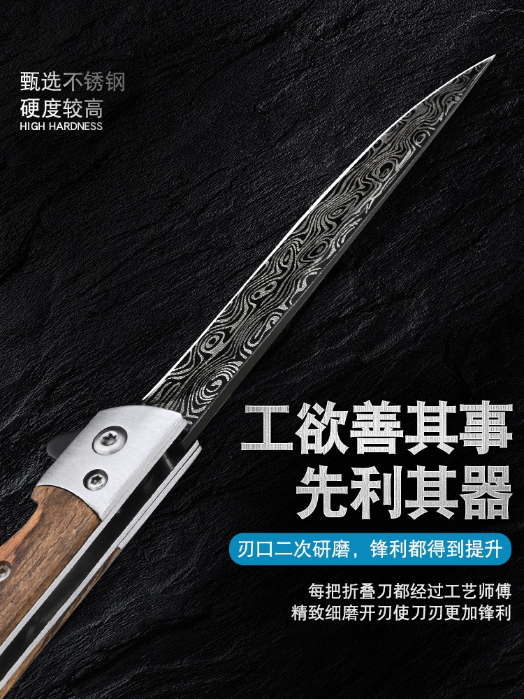 大马士革纹便携折叠水果刀家用精致小刀具正品 高硬度钢锋利削皮刀