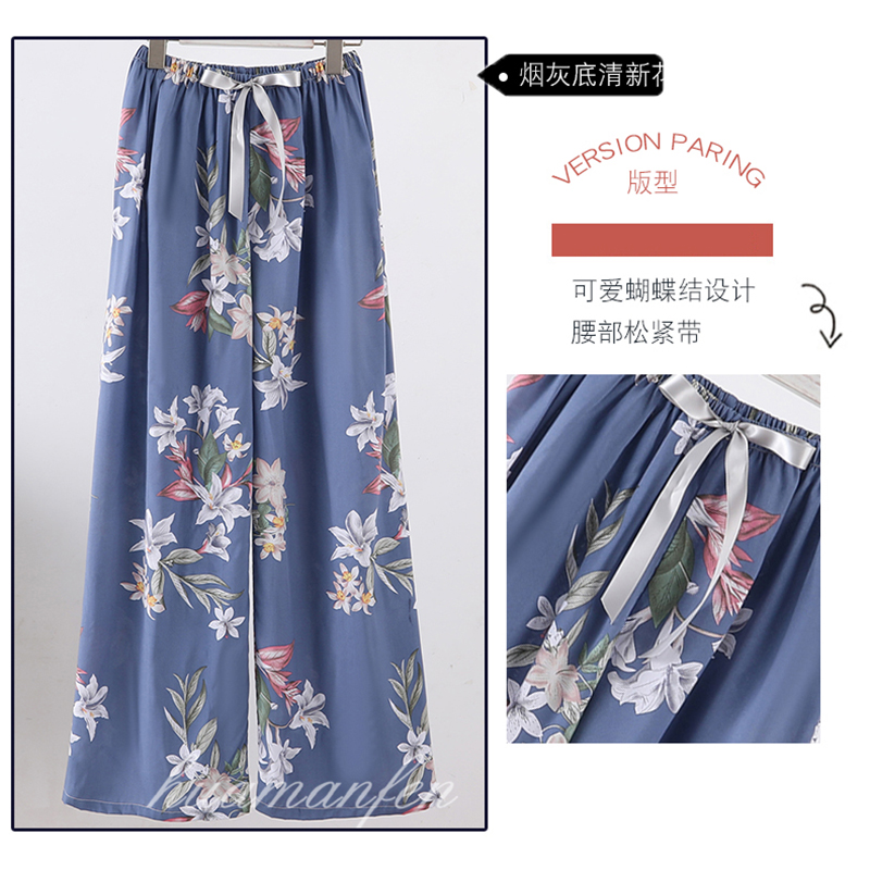 人造棉宽松日系家居裤 绵绸睡裤 薄款 棉绸空调房可外穿阔腿裤 女夏季