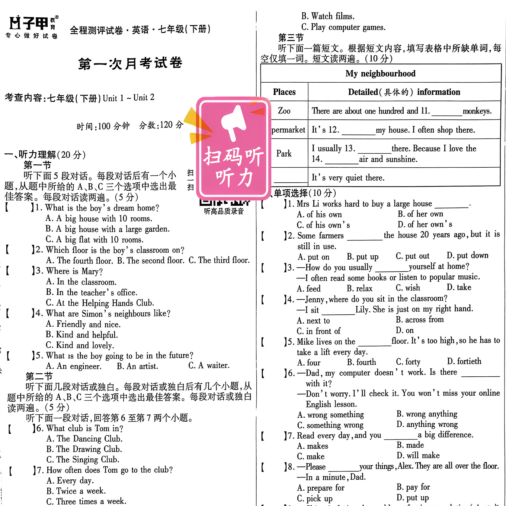 月考期中期末试卷 二三英语上册下册试卷子甲教育全程测评单元 译林版 七八九年级初一