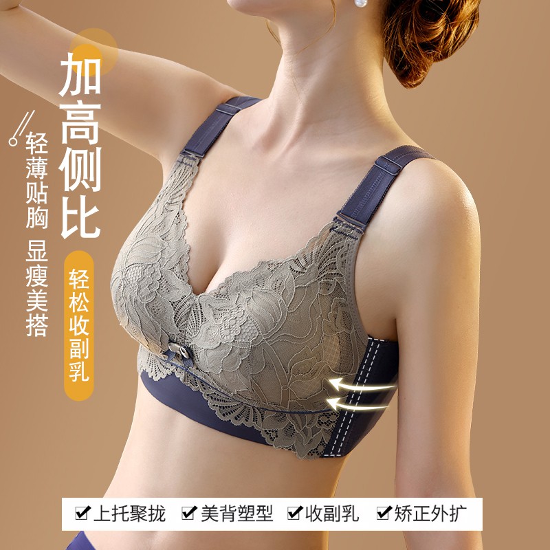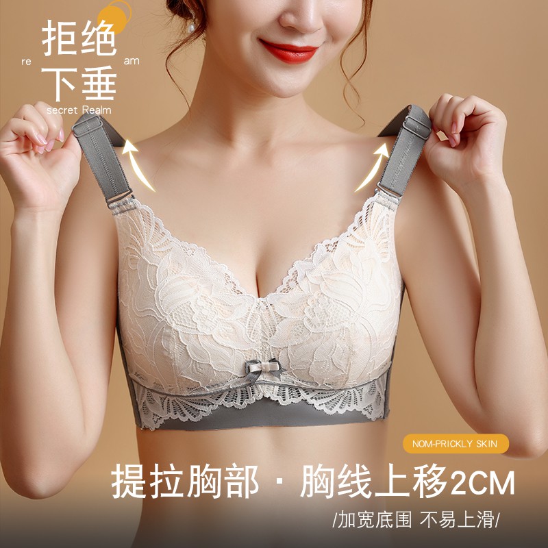 润微提拉内衣女大胸显小无痕防下垂收副乳胸罩爆款 隐形粉底液文胸