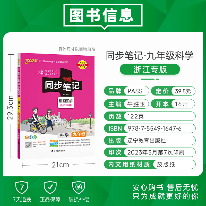同步笔记科学九年级 2024初中学霸同步笔记科学pass绿卡图书全彩图解讲例练初二教材同步讲解练习辅导资料 浙江专版