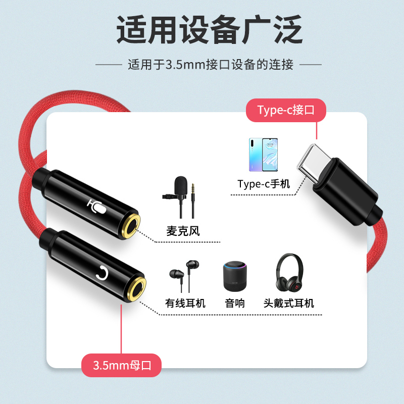 适用Typec转双3.5mm圆孔插头耳麦头戴式 电脑游戏电竞7.1耳机转接华为vivo手机小米13转换器IQOO红米k60数据线