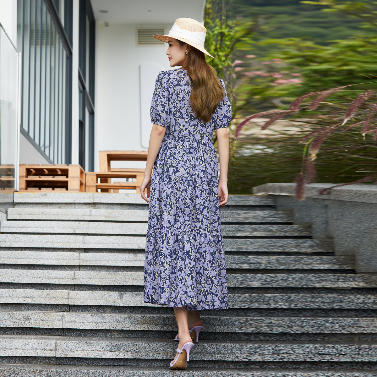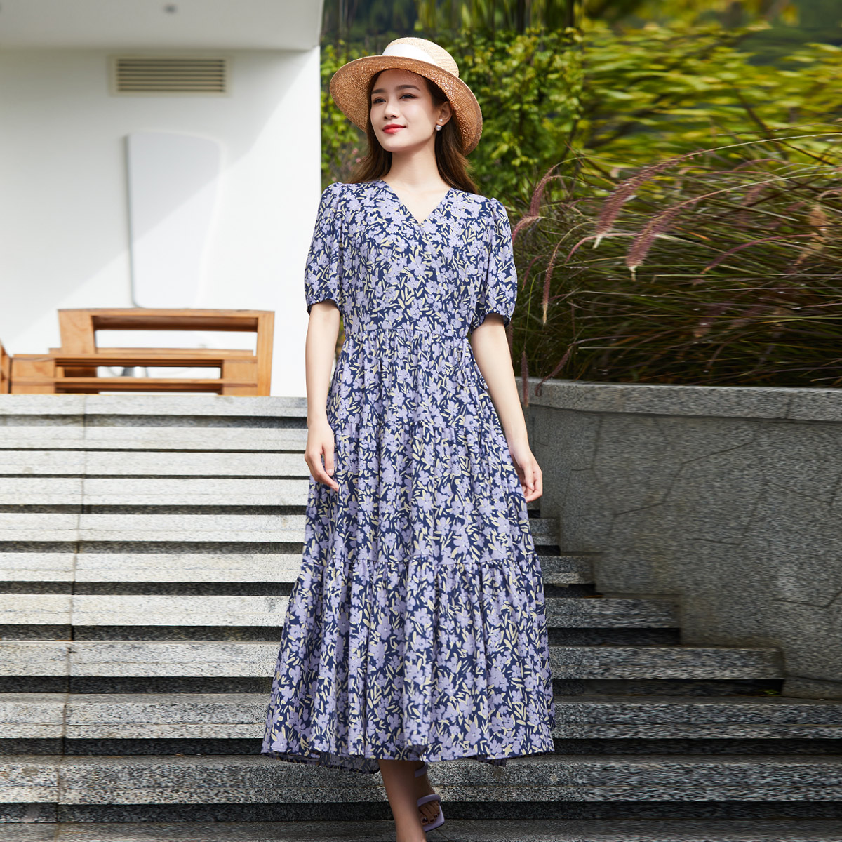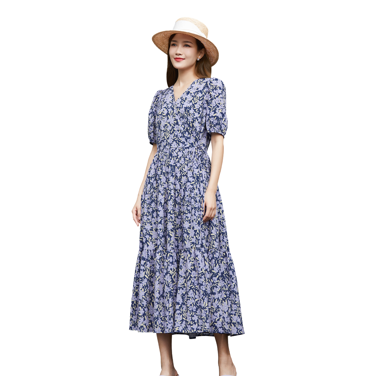 歌蒂诗夏专柜新款 优雅气质V领小碎花收腰显瘦连衣裙1D24L3095