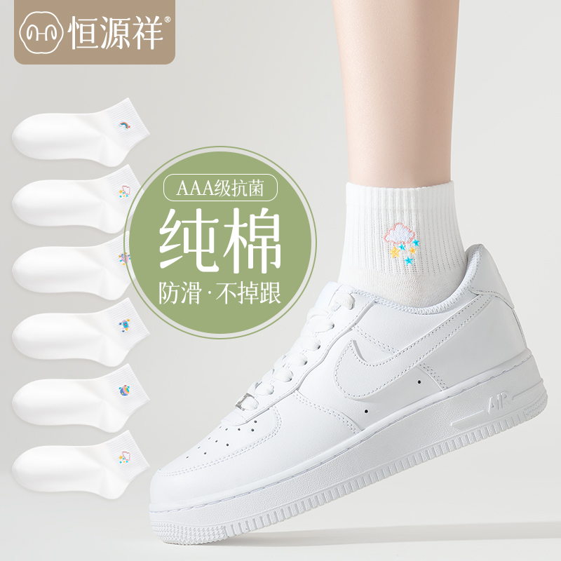 全棉短袜子女春秋季 中短筒袜无骨 纯棉吸汗防臭抗菌透气运动夏薄款