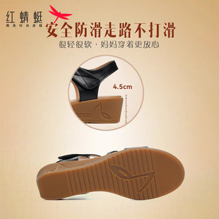 休闲中年妈妈百搭厚底女鞋 红蜻蜓凉鞋 真皮坡跟时尚 2025新款 女夏季